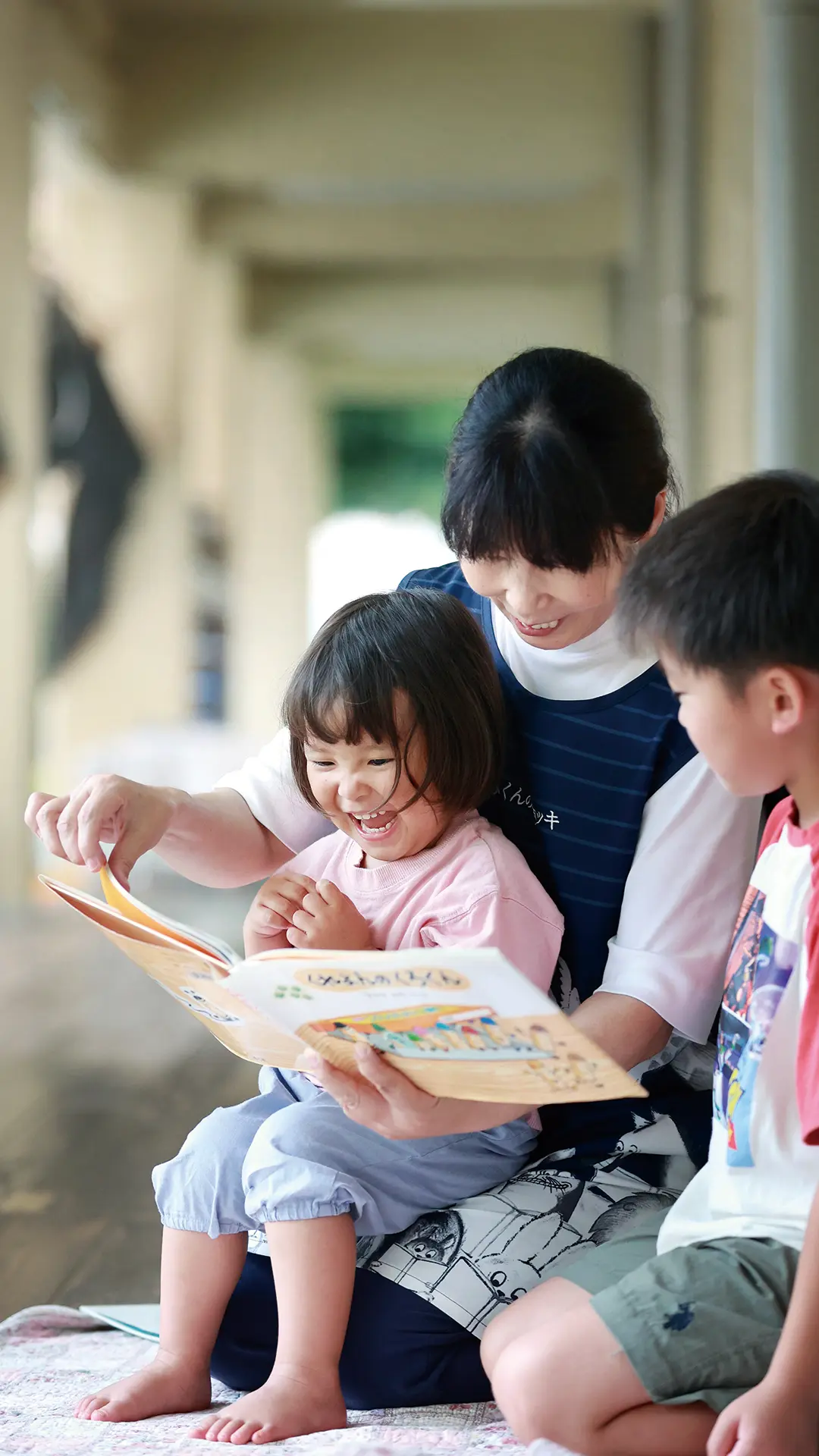 読書の秋、久留米市の江南保育園での心温まる一コマ。園児のお気に入りの絵本を、先生がひざの上で読み聞かせています。クライマックスに差しかかると、とても大好きなシーンなのでしょう、思わず口元に手を当てて喜びの声をあげていました。