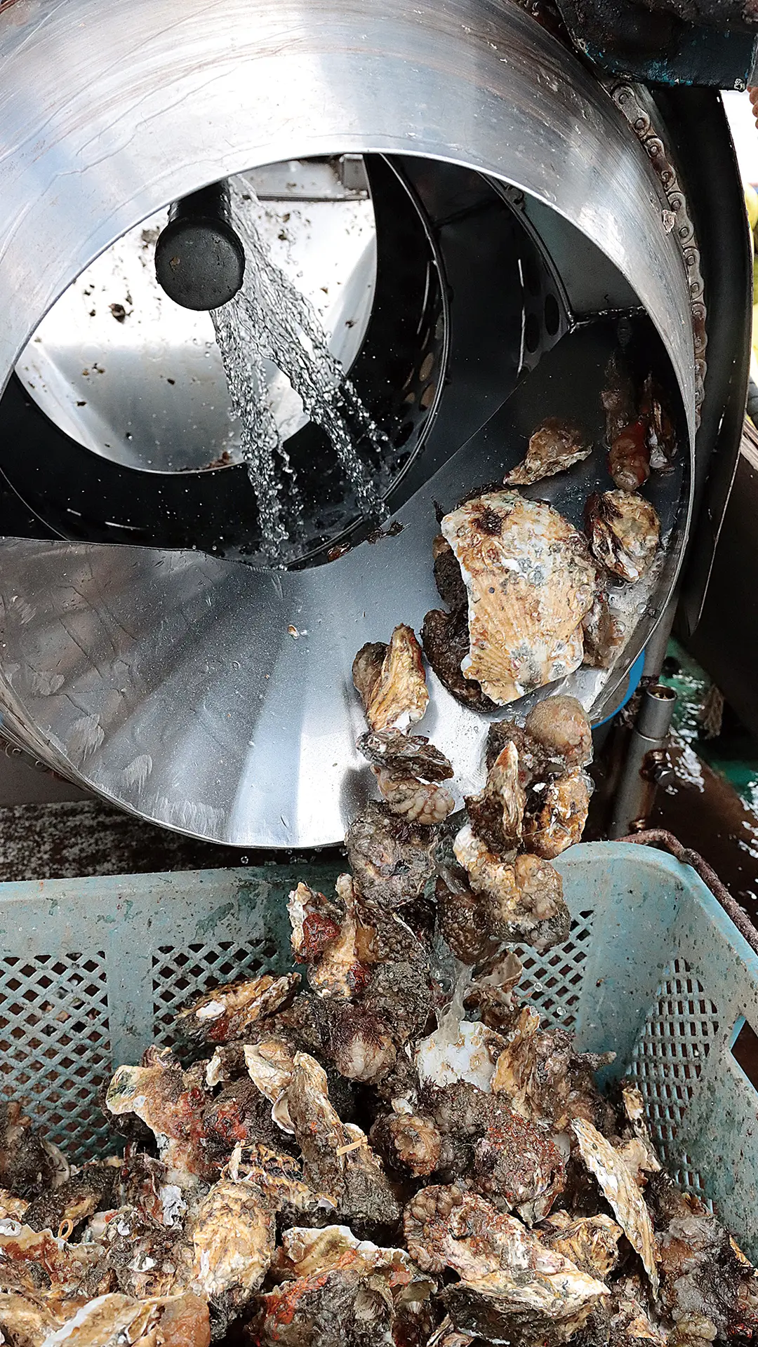 安心して味わえるように、出荷時にもひと手間を加えます。紫外線で殺菌処理した海水に1日浸すことで、高品質で安全・安心なカキを消費者に届けます。こうした丁寧な作業が、ブランドへの信頼と価値を高めているのです。
