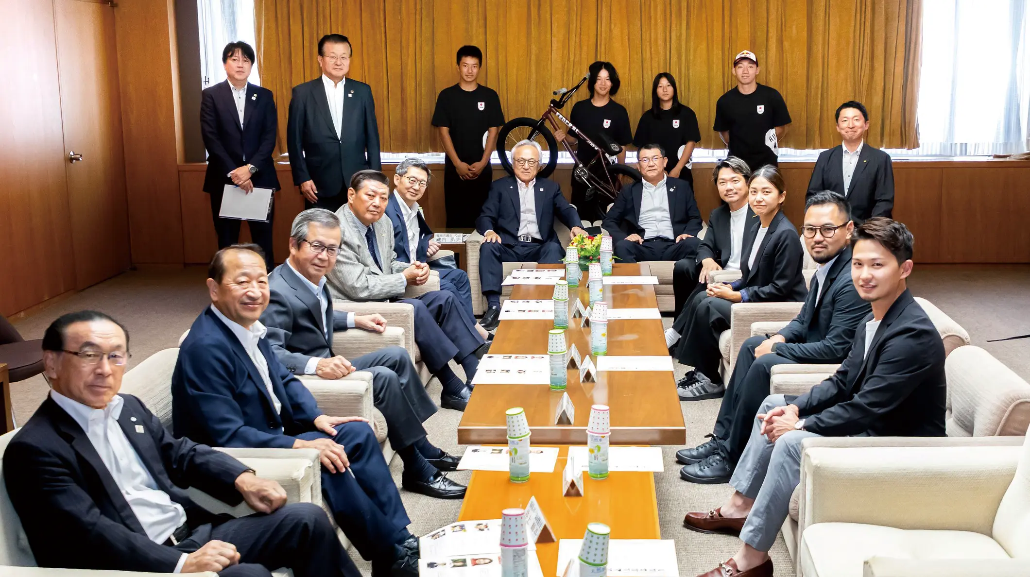 8月18日、一般社団法人全日本フリースタイルBMX連盟の出口智嗣理事長、真鍋佑希事務局長などが県議会を訪問され、藏内勇夫議長、中尾正幸副議長をはじめ、スポーツ議員連盟役員などがお迎えしました。