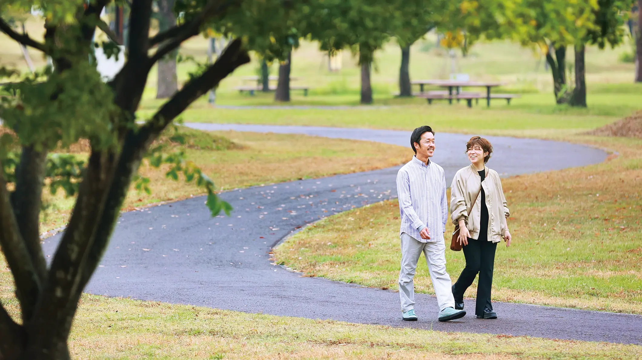 移住から約1年半が経過し、「広さに圧倒された」という県営筑後広域公園が2人のお気に入りの場所。プールを利用したり、近くのカフェに立ち寄った後に散策したりしています。