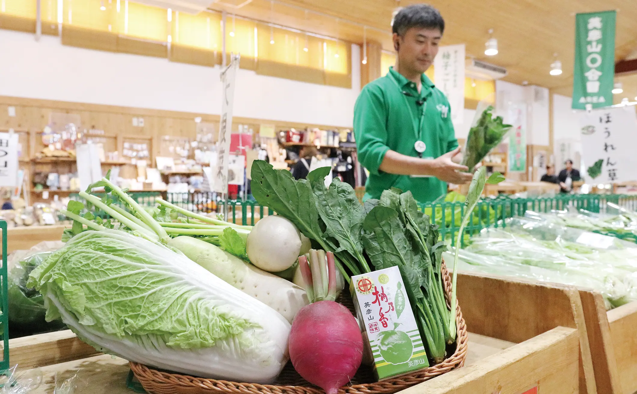 商品の8割超が町内産で、野菜は100%地場産を守ります。「町の旬が集まります」と駅長の福丸未央(ふくまるみお)さんは笑顔を見せます。