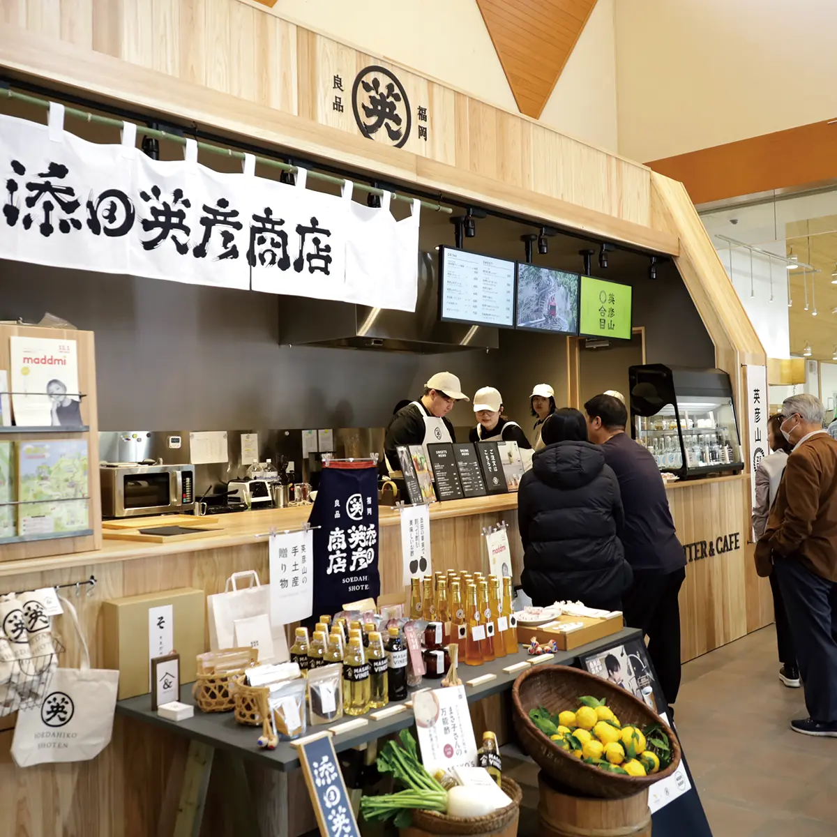 隣接のフードコートには、軽食やスイーツを提供する9店舗が並んでいます。精肉店が営む「ニクダイナー イワナガ」では、地元の米と卵を使ったおにぎり「玉めし」が人気。醤油で味付けしたご飯に、半熟卵がまるごと包まれています。八女茶を販売する「水茶屋樹徳庵(みずちゃやじゅとくあん)」の名物は「抹茶のパフェきよみず」。抹茶ソフトの上に白玉や小倉あん、黒蜜などがかかっており、運転の疲れを癒やしてくれそうです。