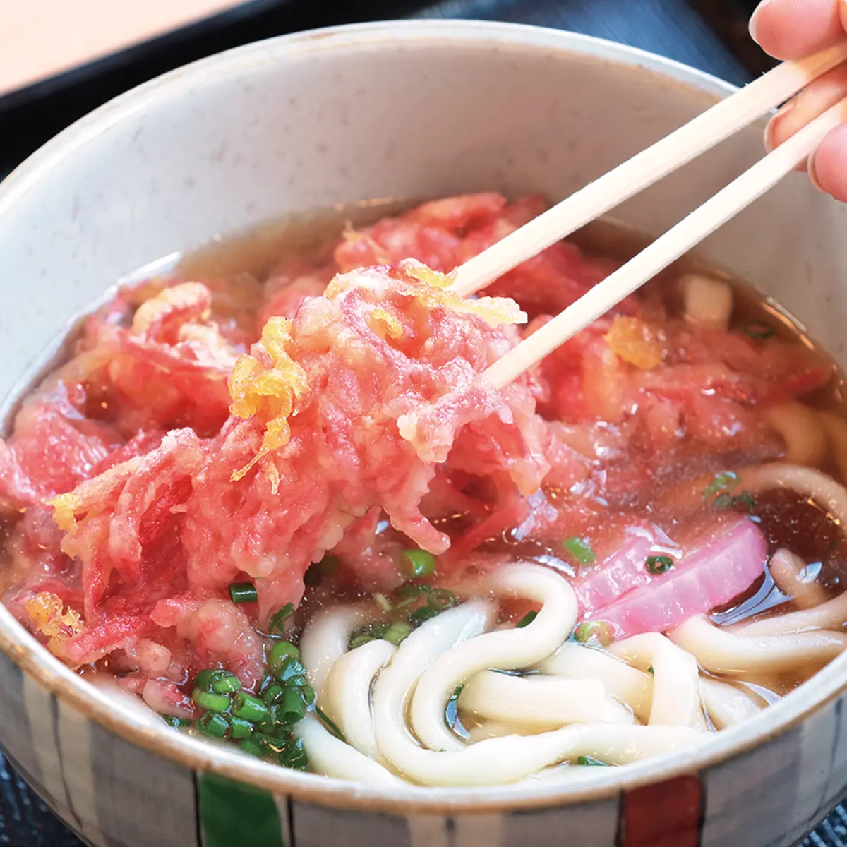 敷地内では、レストランも営業。食事処(どころ)「山びこ食堂」では、色鮮やかな紅生姜(しょうが)天うどんや、天ぷら定食などが味わえます。中華料理店のほか、地元婦人部の皆さんがつきたての餅を販売する「もち工房」もあります。