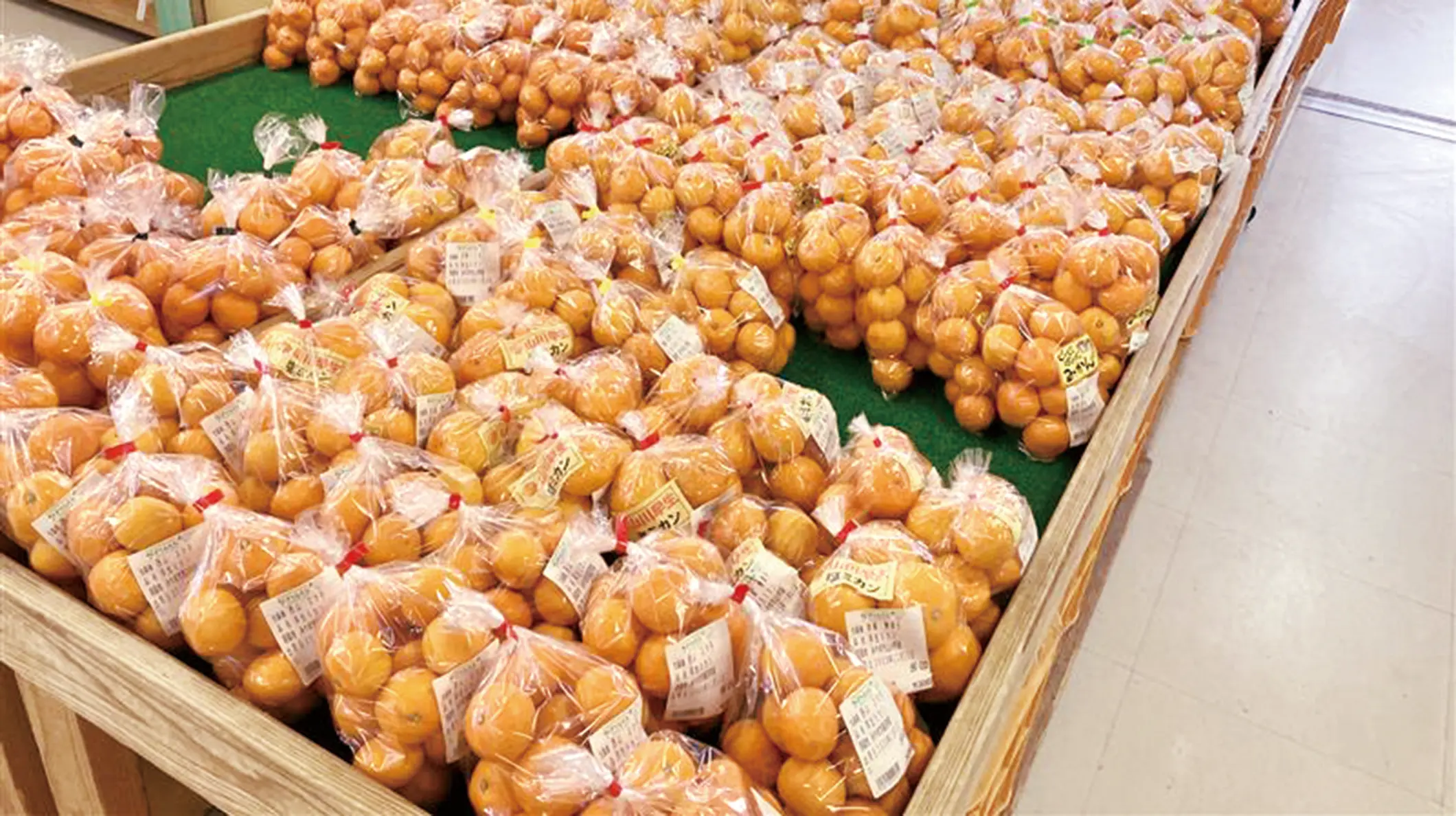 果物では「山川みかん」が有名。11月中旬から早生(わせ)ミカンが収穫され、糖度が高く甘みが凝縮された果肉を味わえます。1月~2月頃になると晩生(おくて)ミカンが並びます。