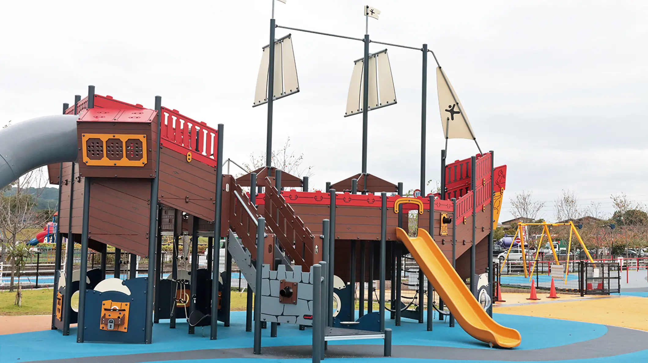 2025年3月には「ふれあい広場」がオープン。海賊船をイメージした大型アスレチックやブランコ、ターザンロープや電動ゴーカートがあり、大勢の家族連れでにぎわいます。広場内にあるボールプールなどが並ぶ屋内施設「こどもはうす」では、0~12歳の年齢別でエリアに分かれて遊べます。さらに、敷地内にある天然温泉を活用した温浴施設「さくら館」には露天風呂や家族湯、サウナもあり、旅の疲れを癒やせます。